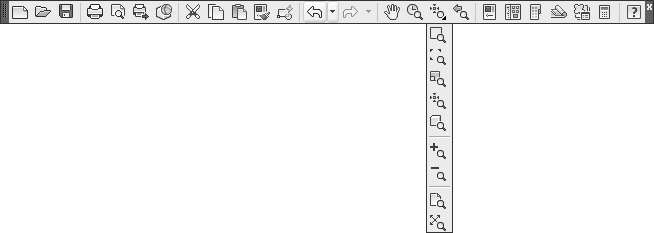 在“标准”工具栏的“缩放”下拉工具栏(如图1-32所示)和“缩放”工具栏(如图1-33所示)中还有一些类似的“缩放”命令,读者可以自行操作体会,这里不再一一赘述。