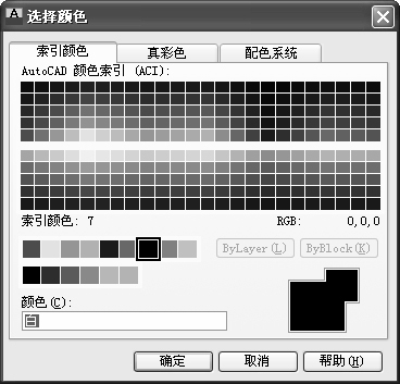 (3)“ByLayer”和“ByBlock”按钮:单击这两个按钮,颜色分别按图层和图块设置。这两个按钮只有在设定了图层颜色和图块颜色后才可以使用。