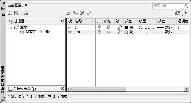 ,在图层列表框中出现一个默认名为“图层1”的新图层,如图1-60所示,用鼠标单击该图层名,将图层名改为CEN,如图1-61所示。