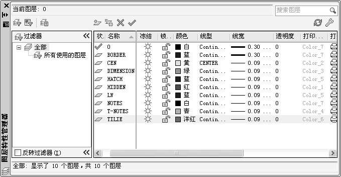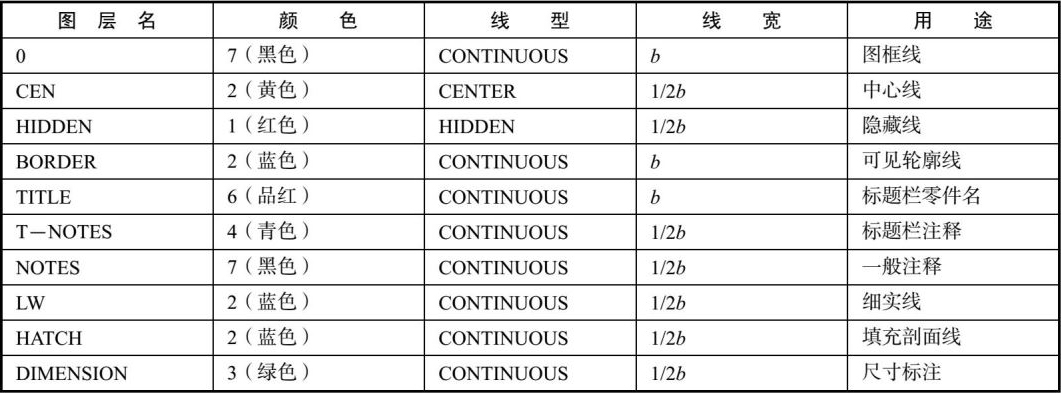 设置图层。本例准备设置一个机械制图样板图,图层设置如表1-4所示。