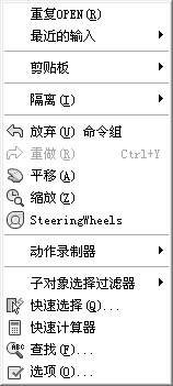 ●快捷菜单:在绘图区右击,系统打开快捷菜单,如图1-18所示,选择“选项”命令。