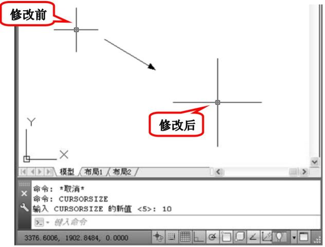 用户可以根据绘图的实际需要修改光标的大小,修改光标大小的方法如下。