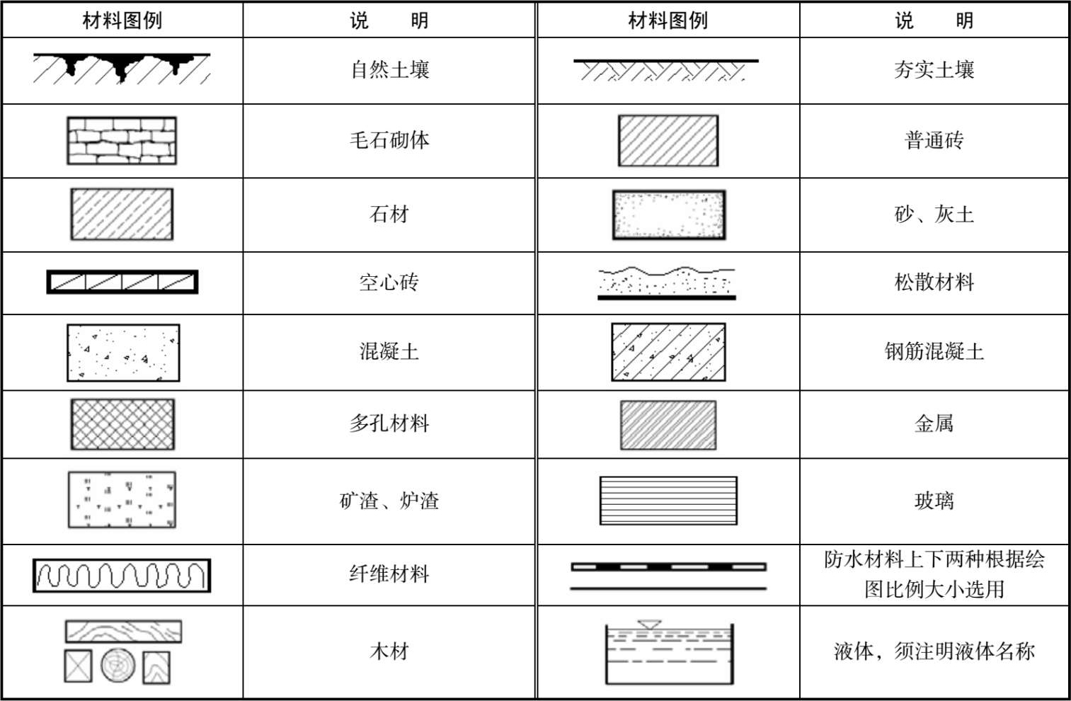 表1-4 常用材料图例