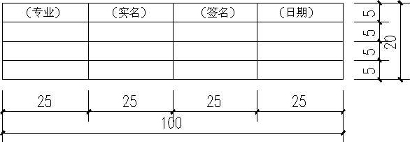 会签栏是为各工种负责人审核后签名用的表格,它包括专业、姓名、日期等内容,具体内容根据需要设置,如图1-13所示为其中一种格式。对于不需要会签的图样,可以不设此栏。