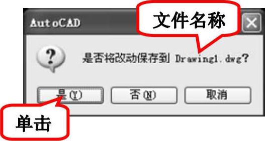 执行上述命令后,若用户对图形所做的修改尚未保存,则会打开如图2-26所示的系统警告对话框。单击“是”按钮,系统将保存文件,然后退出;单击“否”按钮,系统将不保存文件。若用户对图形所做的修改已经保存,则直接退出。