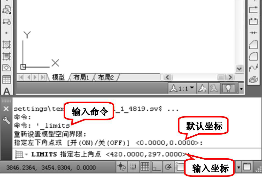 ● 开(ON):使图形界限有效。系统在图形界限以外拾取的点将视为无效。