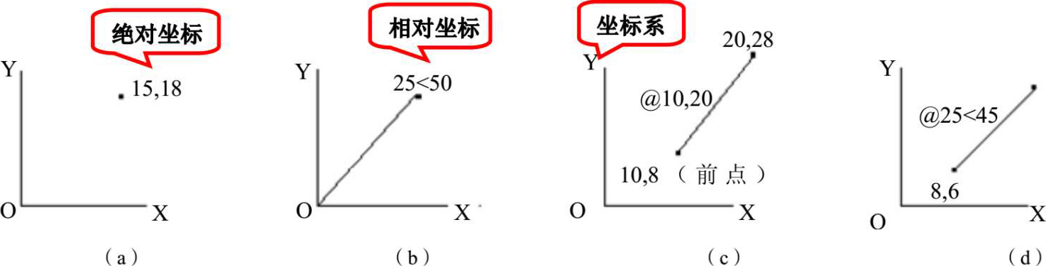 (1)直角坐标法。用点的 X Y 坐标值表示的坐标。