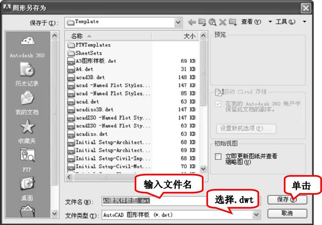 (4)保存为样板图文件。现阶段的样板图及其环境设置已经完成,先将其保存为样板图文件。