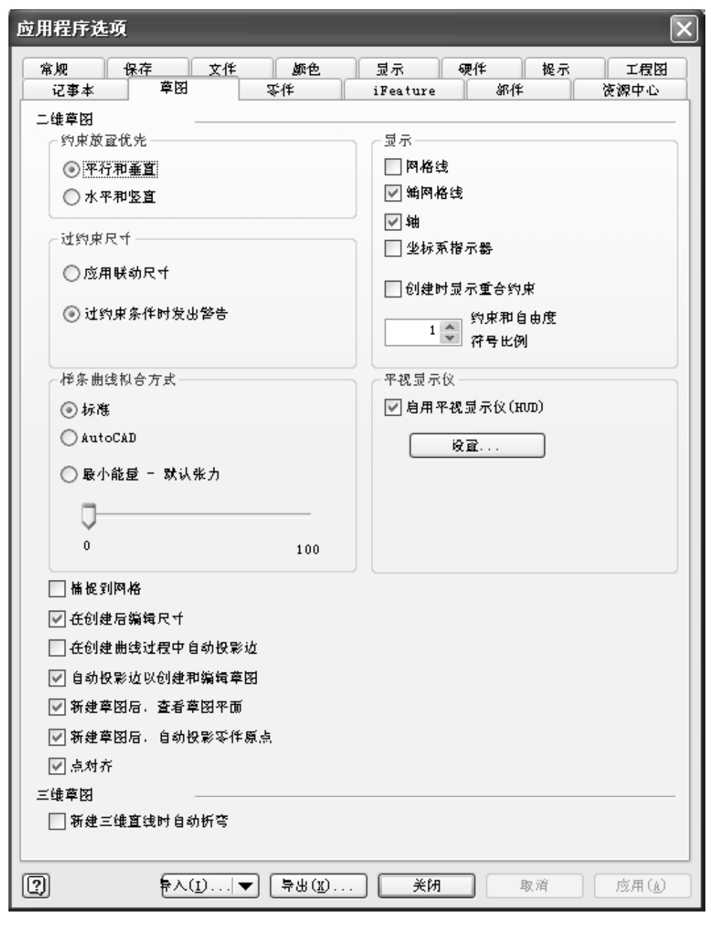 执行上述操作后,打开“应用程序选项”对话框,在对话框中选择“草图”选项卡,如图3-2所示。
