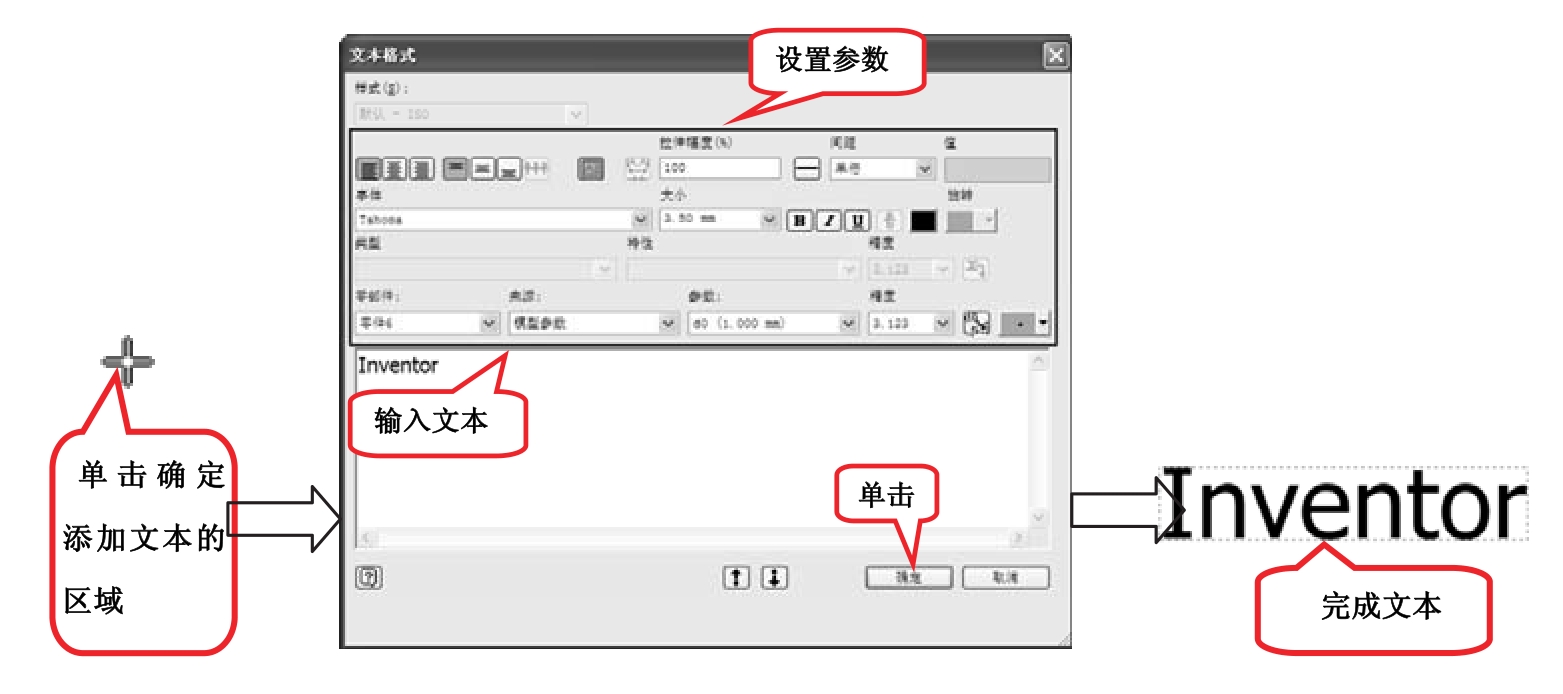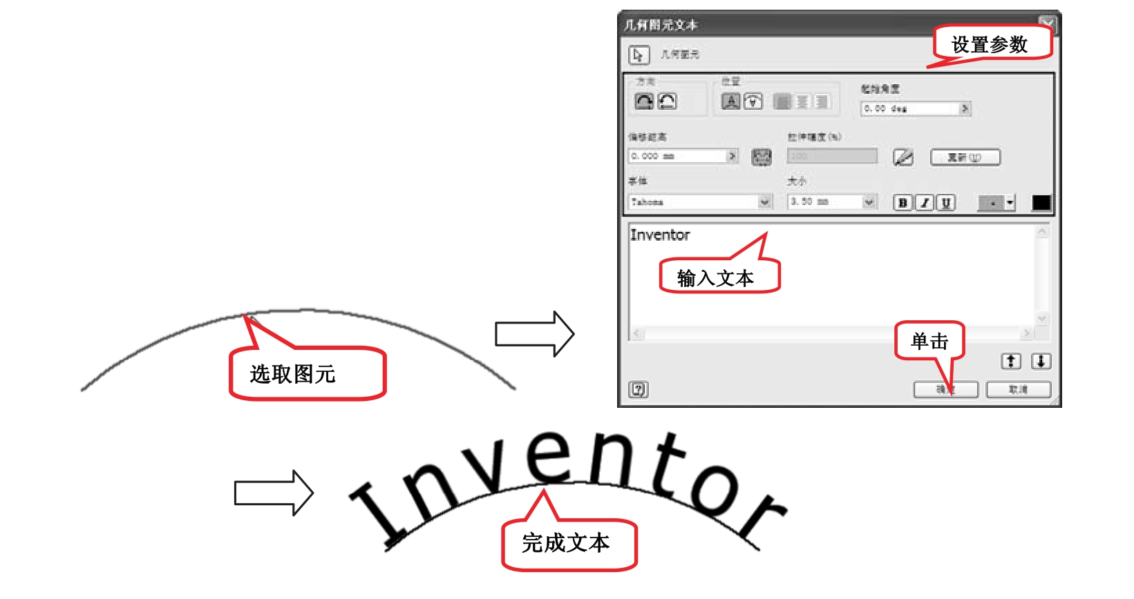 功能区:单击“草图”标签栏“绘制”面板上的“几何图元文本”按钮