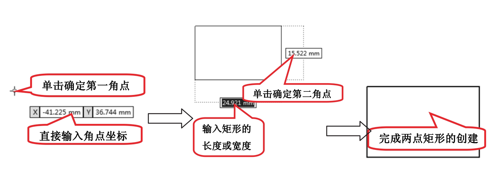 功能区:单击“草图”标签栏“绘制”面板上的“两点矩形”按钮