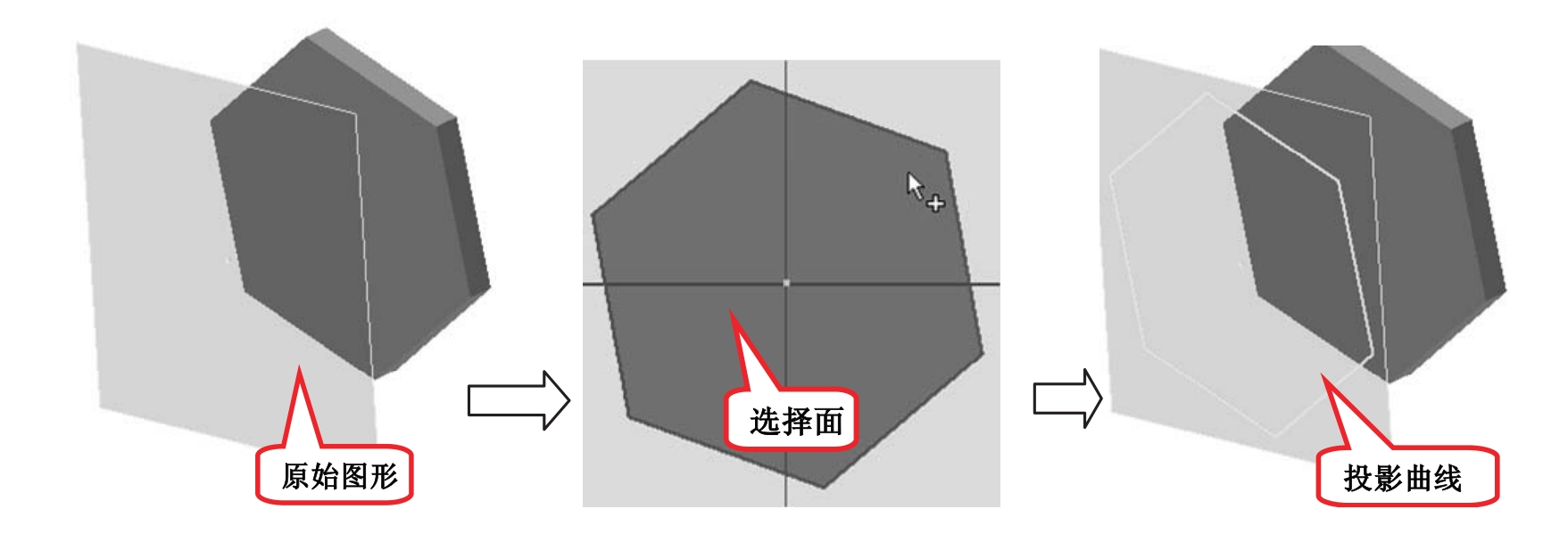 打开随书光盘“源文件”文件夹下“第3章\课上十分钟\投影几何图元”,操作过程如图3-21所示。