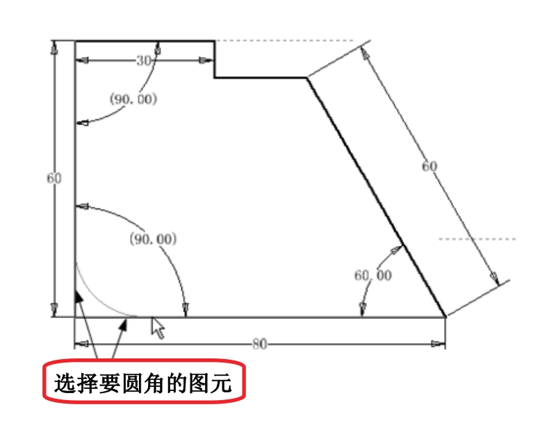 ❹ 倒圆角。单击“草图”标签栏“绘制”面板上的“圆角”按钮