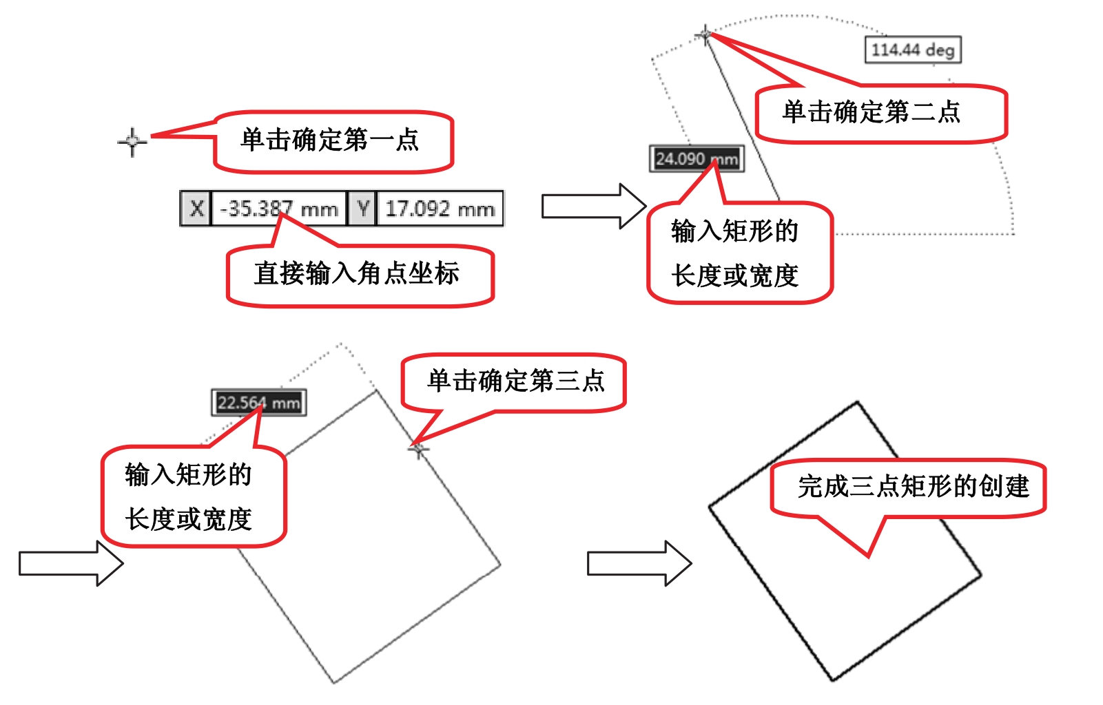 功能区:单击“草图”标签栏“绘制”面板上的“三点矩形”按钮