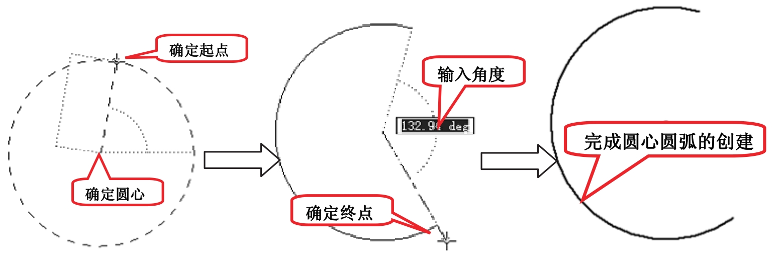 功能区:单击“草图”标签栏“绘制”面板上的“圆心圆弧”按钮