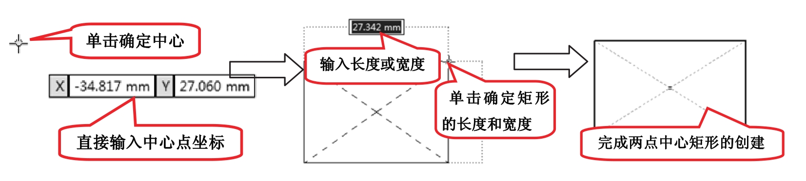 功能区:单击“草图”标签栏“绘制”面板上的“两点中心矩形”按钮