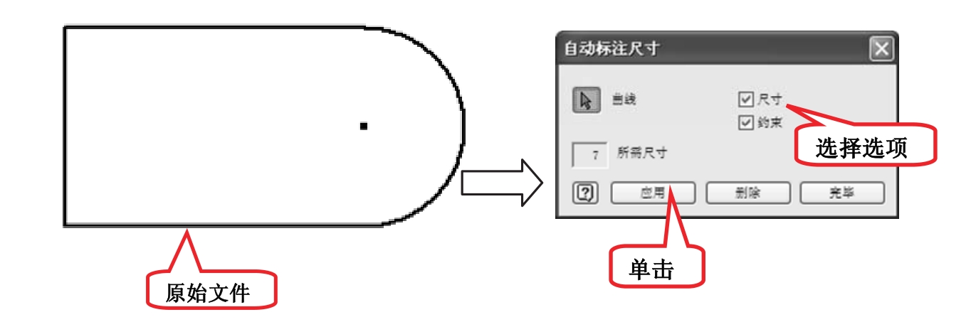 (1)尺寸:勾选此复选框,对所选的几何图元应用自动尺寸。