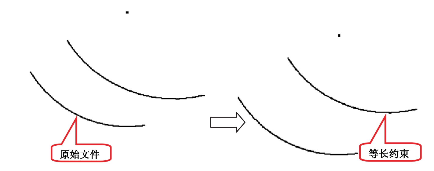 将所选的圆弧或圆调整到具有相同半径,或将所选的直线调整到具有相同的长度。使用该约束工具时分别用鼠标选取两个或多个要施加约束的几何图元即可创建等长约束,这里的几何图元是直线、圆弧和圆。