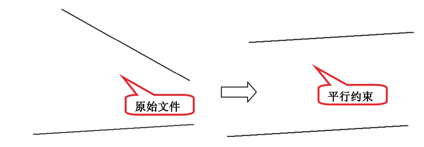 将两条或多条直线(或椭圆轴)约束为互相平行。使用时分别用鼠标选取两个或多个要施加约束的几何图元即可创建平行约束。