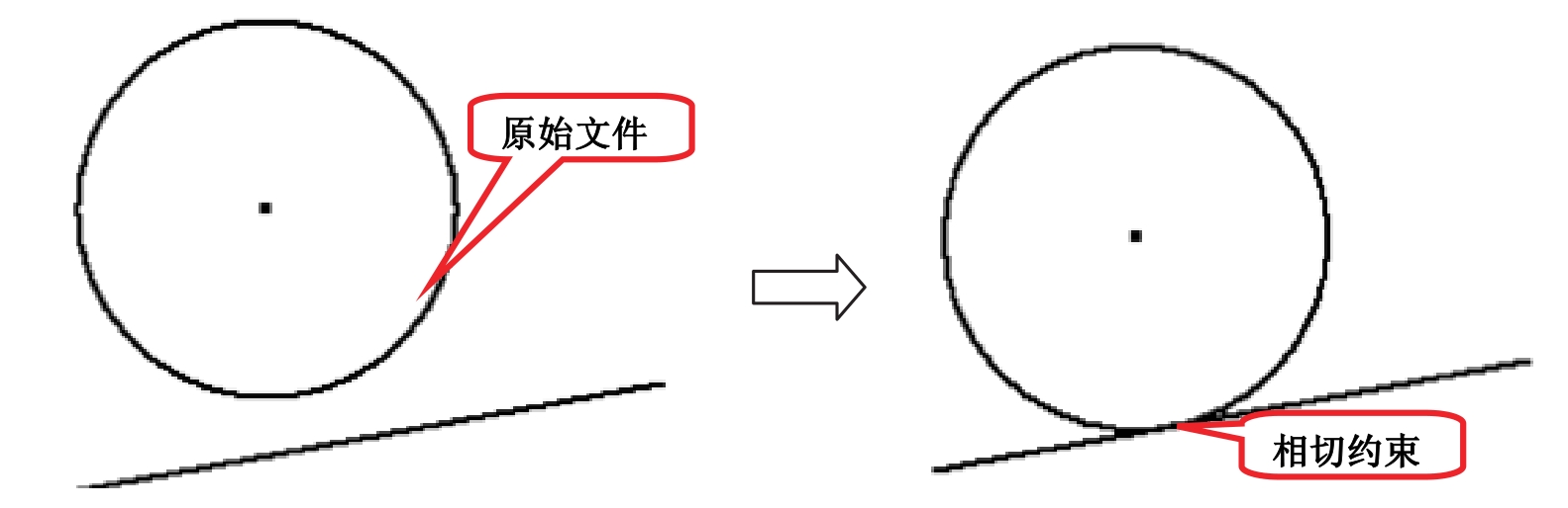 约束的目的就是保持图元之间的某种固定关系,这种关系不受被约束对象的尺寸或位置因素的影响。如在设计开始时绘制一条直线和一个圆始终相切,但是如果圆的尺寸或位置在设计过程中发生改变时,这种相切关系不会自动维持;但如果给直线和圆添加了相切约束的话,无论圆的尺寸和位置怎么改变,这种相切关系会始终维持下去。