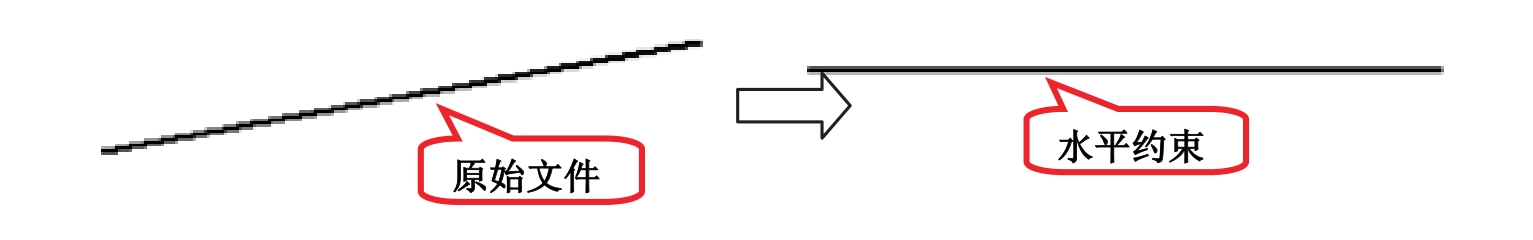 使直线、椭圆轴或成对的点平行于草图坐标系的“X”轴,添加了该几何约束后,几何图元的两点如线的端点、中心点、中点或点等被约束到与“X”轴相等距离。使用该约束工具时分别用鼠标选取两个或多个要施加约束的几何图元即可创建水平约束,这里的几何图元是直线、椭圆轴或成对的点。