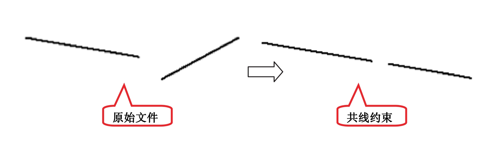 使两条直线或椭圆轴位于同一条直线上。使用该约束工具时分别用鼠标选取两个或多个要施加约束的几何图元即可创建共线约束。如果两个几何图元都没有添加其他位置约束,则由所选的第一个图元的位置来决定另一个图元的位置。