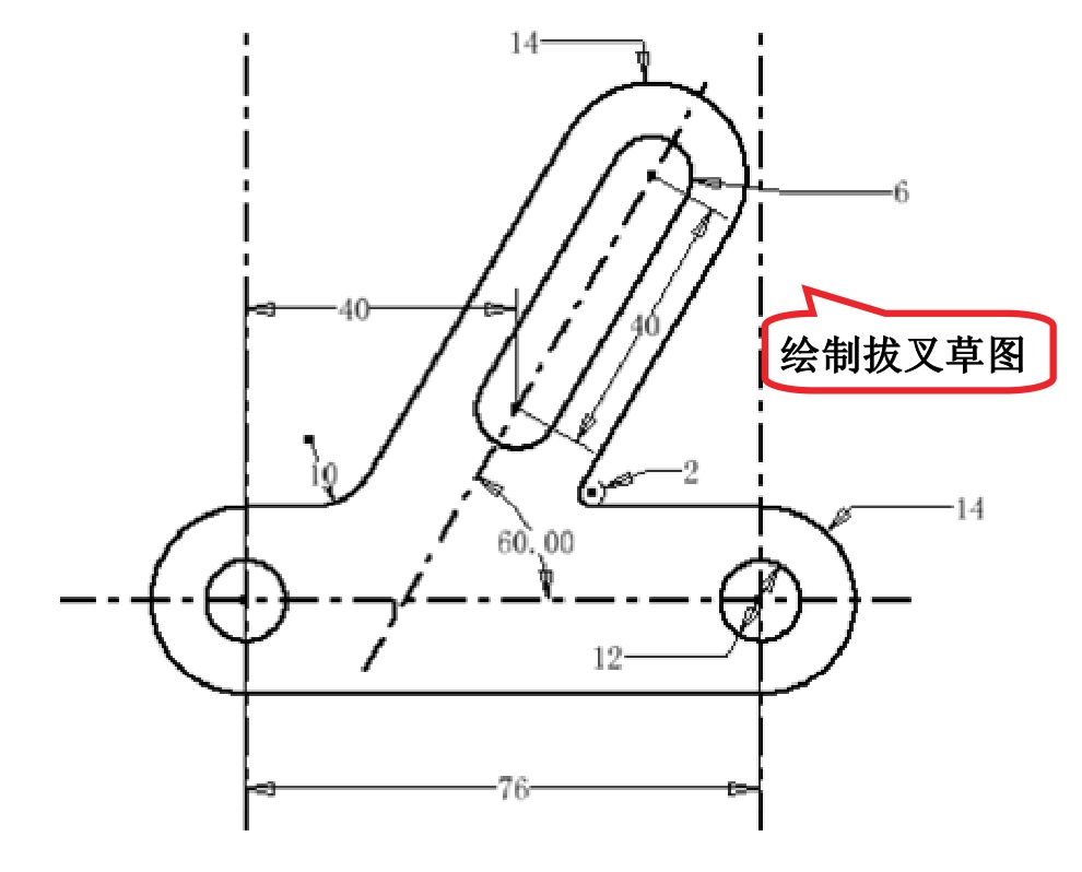 ,进行尺寸约束。绘制完成的拔叉草图如图3-82所示。