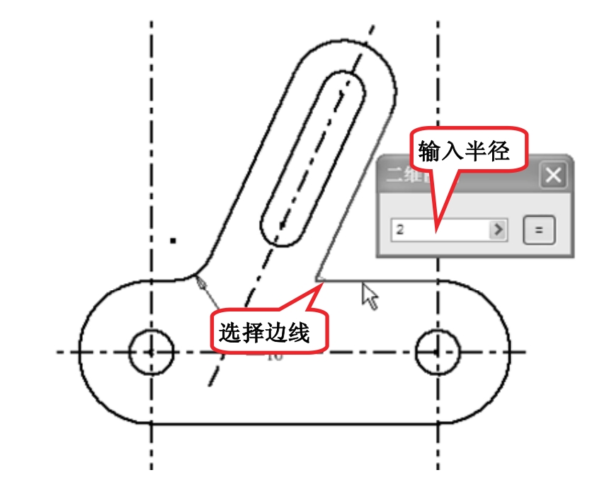 ❿ 完成圆角。单击“草图”标签栏“绘制”面板上的“圆角”按钮