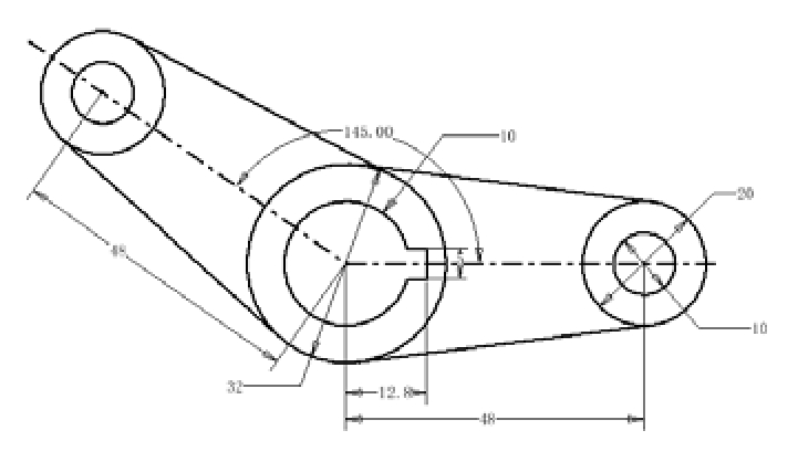 (1)利用“直线”和“圆”命令绘制曲柄大体轮廓。