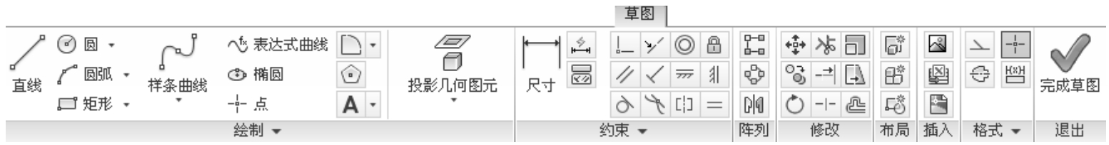 在草图环境中绘制完草图后,单击“草图”功能区中的“完成草图”选项