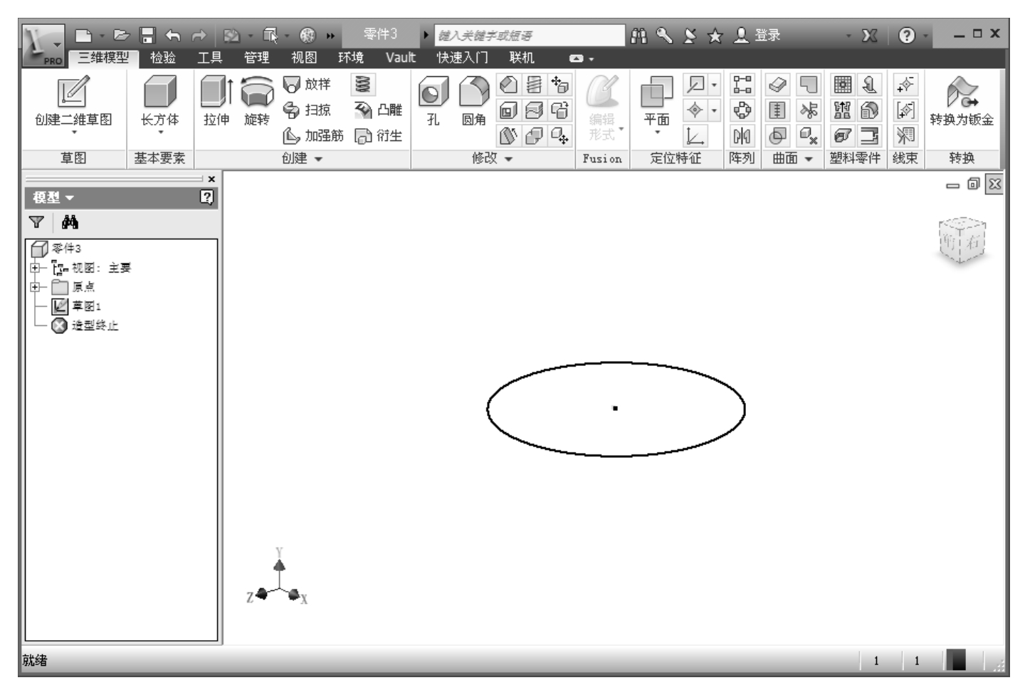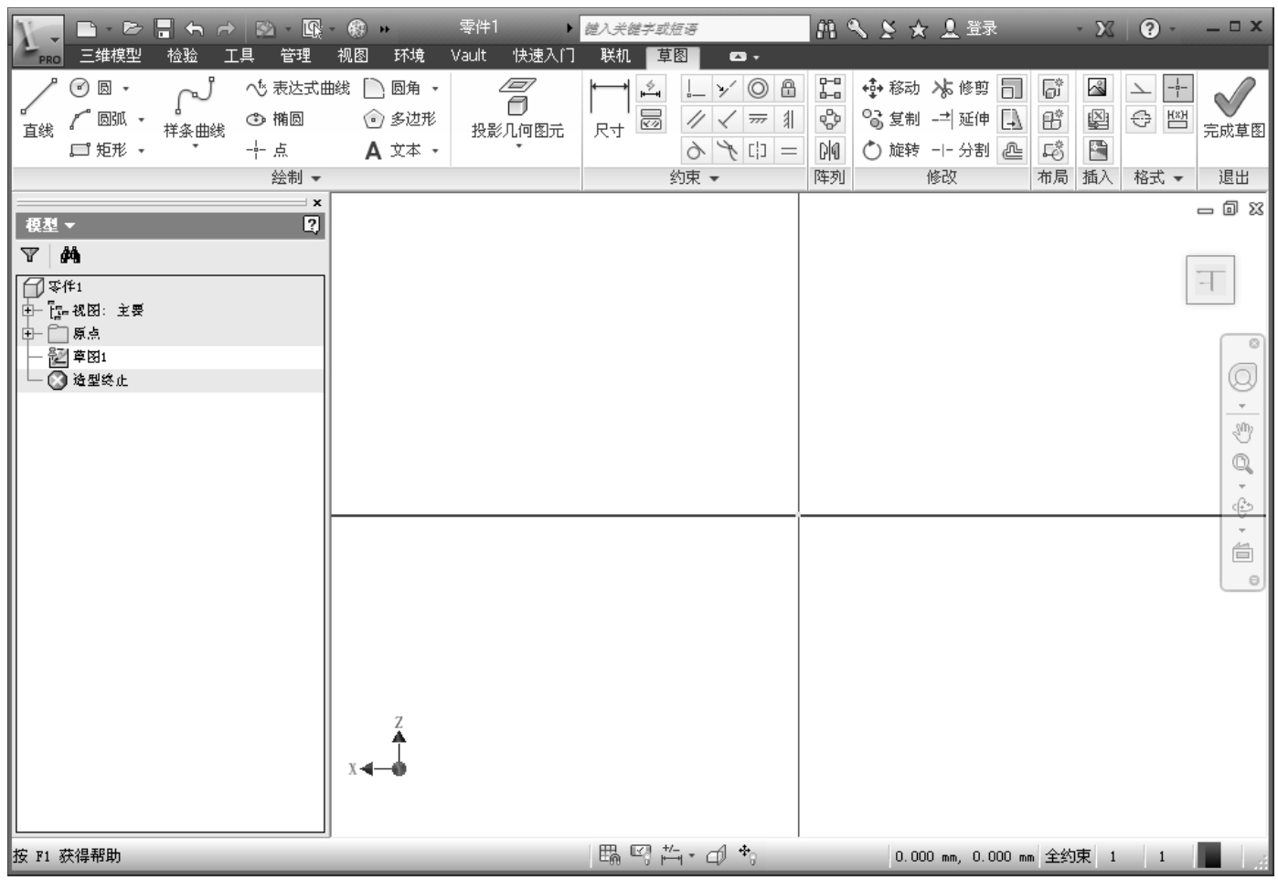 新建一个零件文件,单击“草图”面板上的“创建二维草图”按钮