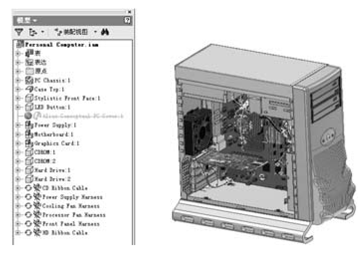 使用部件工具和菜单选项,可对构成部件的所有零件和子部件进行操作,如添加一个零部件的操作,传统上,设计者和工程师首先创建方案,然后设计零件,最后把所有的零部件加入到部件中。这称为自上而下的设计方法。