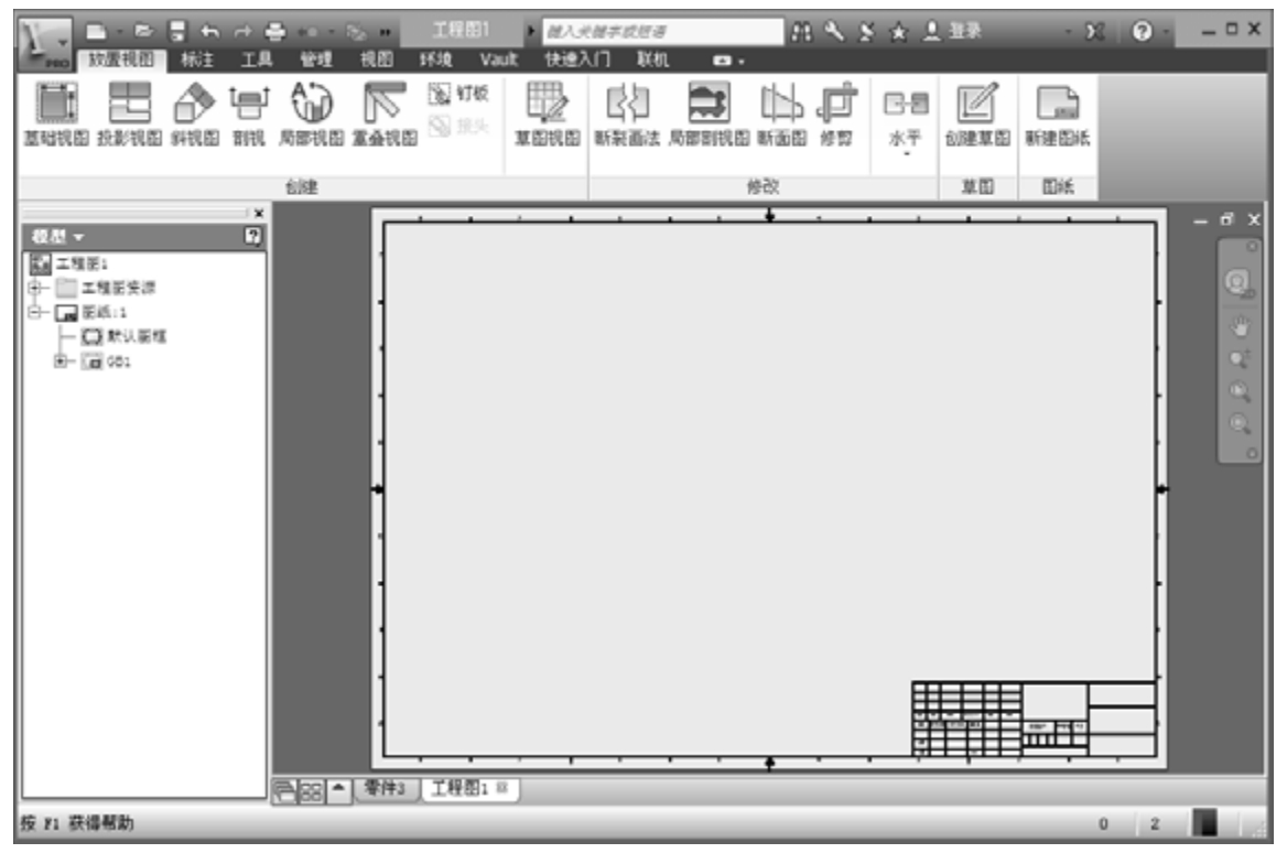 在“新建文件”对话框中选择“Standard.idw”选项,就可进入工程图环境中,如图1-24所示。
