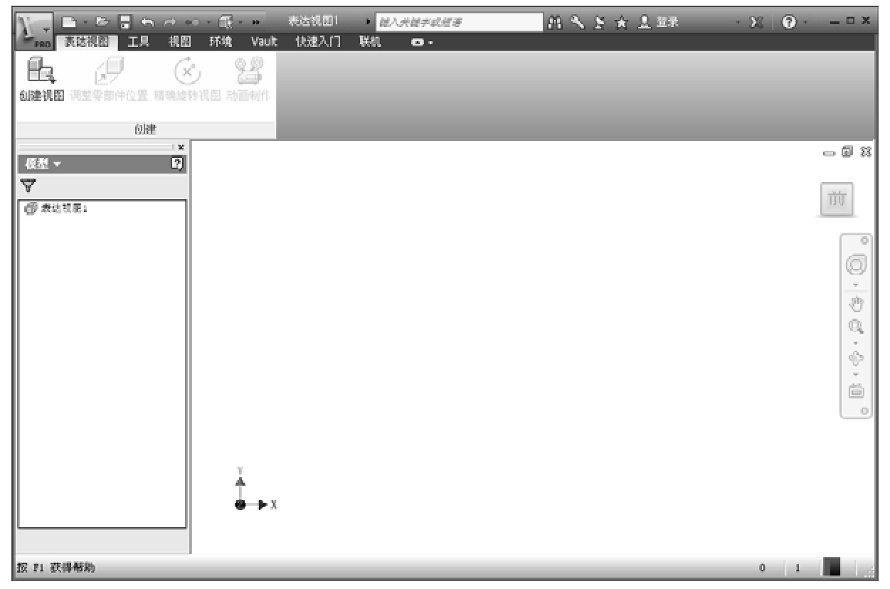 在“新建文件”对话框中选择“Standard.ipn”选项,则进入表达视图环境,如图1-28所示。从左部的表达视图面板就可以看出表达视图的主要功能是创建表达视图、调整表达视图中零部件的位置、按照增量旋转视图、创建动画以演示部件装配的过程。图1-29是创建的表达视图的范例,关于表达视图的创建方法我们将在后面的章节中详述。