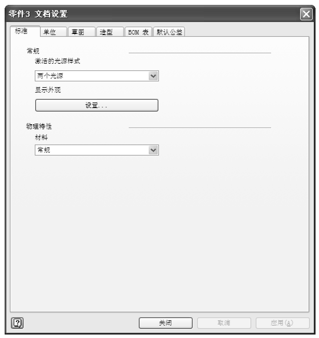 图1-30 零件环境中的“零件3 文档设置”对话框