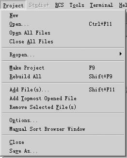 图2.11所示是Project(项目)菜单,该菜单包含了用于控制ICCAVR项目设置相关参数的操作,其详细说明如下: