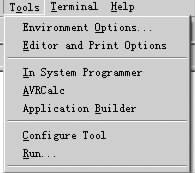 图2.15所示是Tools(工具)菜单,该菜单中包含了用于对ICCAVR的外部相关工具控制的操作,其详细说明如下: