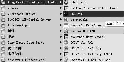 安装完成之后,可以在“开始”菜单中找到对应的文件夹“ImageCraft Development Tools”,单击“ICC AVR”选项即可启动ICCAVR软件,如图2.4所示。
