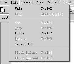 图2.8所示是Edit(编辑)菜单,该菜单包含了编辑操作相关的菜单项,其详细说明如下: