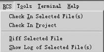图2.14所示是RCS(源控制)菜单,该菜单中包含了ICCAVR的文件相关控制的操作,其详细说明如下: