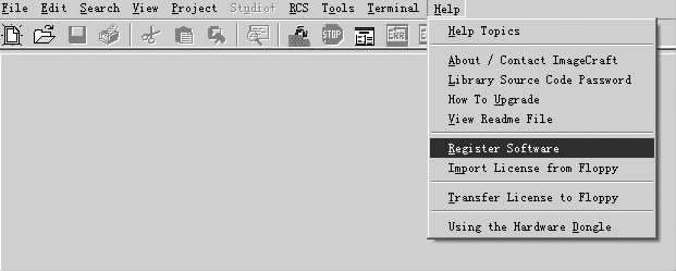 此时的ICCAVR软件还是一个仅可以使用30天的未注册版本,需要在启动软件之后选择菜单命令“Help”→“Register Software”进行注册,方可获得完整的版本,如图2.5所示。