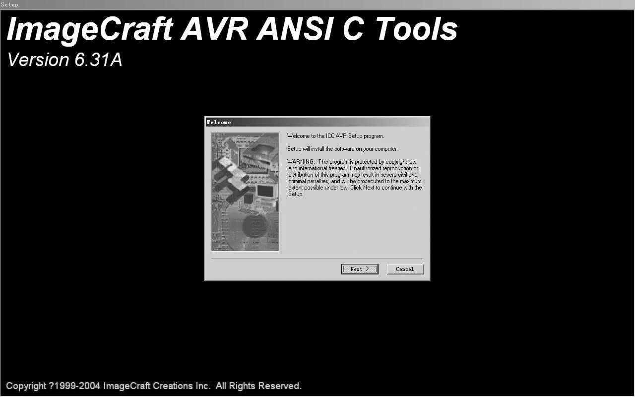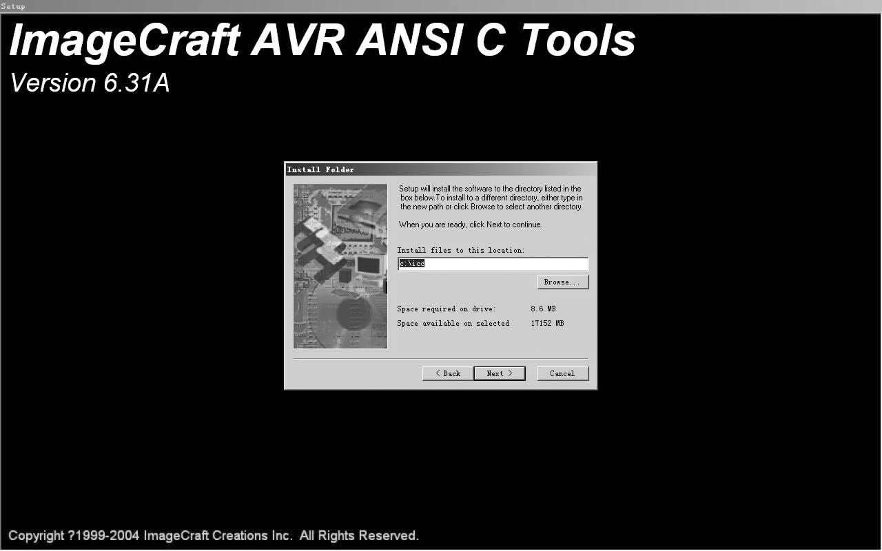 在光盘或硬件中找到ICCAVR的安装程序iccavr 6.31A.exe(此处采用的是iccavr 6.31A版本),双击运行,可以看到如图2.1的提示,一路单击“Next”按钮之后,可以选择安装目录,如图2.2所示。