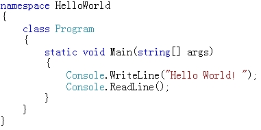 此语句便是调用Console类中的WriteLine方法,输出指定的字符串“Hello World!”。