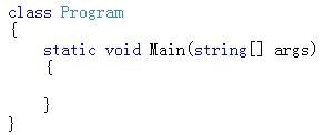 比如,在创建控制台应用程序时,打开Program.cs文件,在应用程序默认类Program中会看到如图3.7所示的Main入口方法。