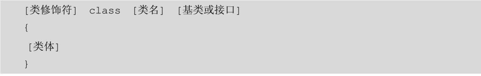 使用任何新的类之前都必须声明它,一个类一旦被声明,就可以当做一种新的类型来使用,在C#中通过使用class关键字来声明类。声明形式如下: