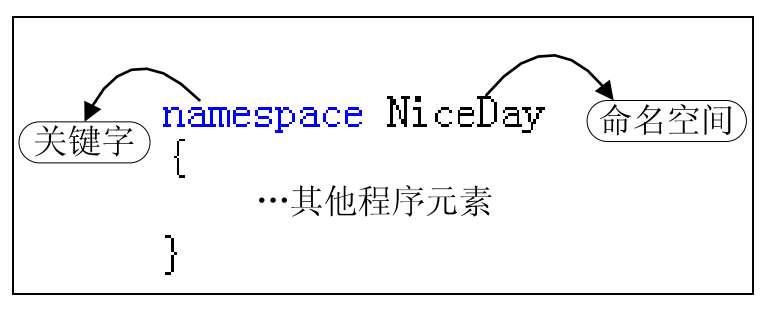 C#程序的大部分元素(如类或方法)被放置在命名空间内部,例如,使用namespace关键字定义一个名称为“NiceDay”的命名空间,如图3.4所示。