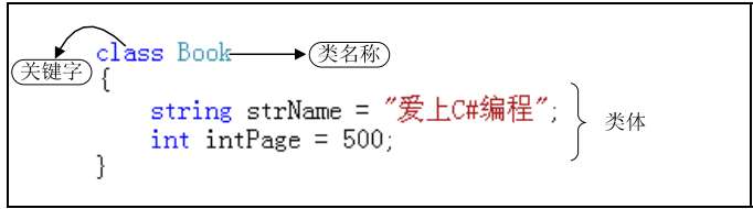 在C#中,类名是一种标识符(详见3.2.4小节),必须符合标识符的命名规则。类名要能够体现类的含义和用途。类名一般采用第一个字母大写的名词,也可以采用多个词构成的组合词。例如,定义一个名称为Book的类,如图3.6所示。