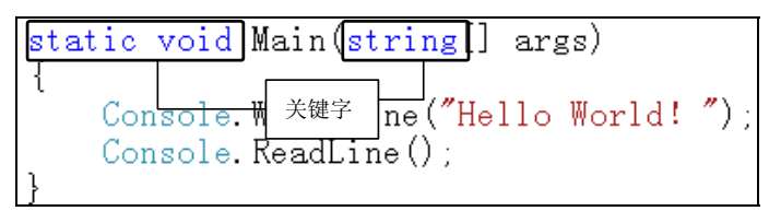 例如,在“Hello World!”程序中的static、void和string都是关键字,如图3.9所示。