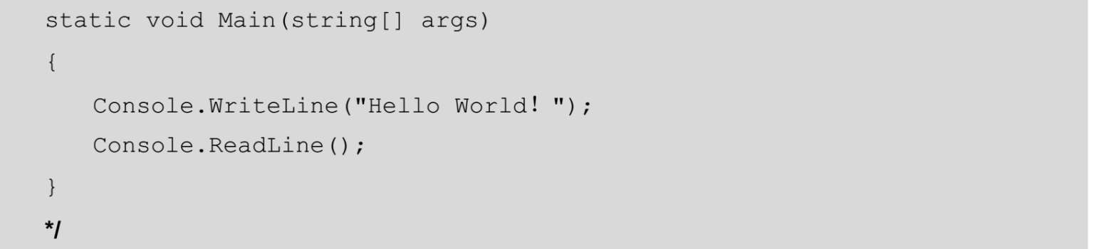 【例3.5】 在“Hellllo Worlld!”程序中使用块注释,代码如下: