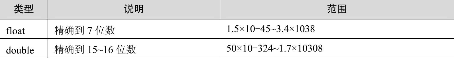 在许多书中对浮点类型都有这样的叫法:double类型通常称为双精度,float类型通常称为单精度。